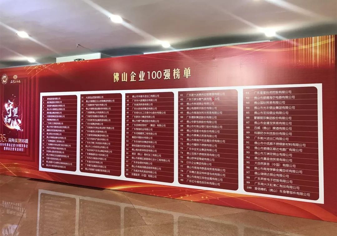 聚焦大湾区建设,龙8国际-long8唯一官网入选2019年佛山企业100强榜单