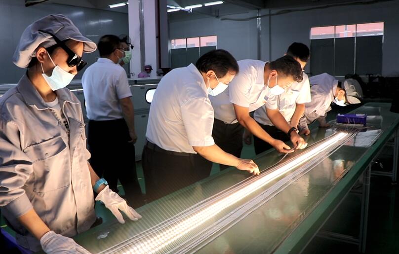 随后,赵晖深入罗村厂区、高明总部生产基地项目现场,实地检查项目建设进度以及安全管理、疫情防控等工作,听取项目的进展汇报。赵晖充分肯定了龙8国际-long8唯一官网重点项目建设取得的积极成效,并对下一阶段工作提出四点要求:一要牢牢把握“双区”建设、“双城”联动等重大历史机遇,早谋划、早行动,明确想法、落实办法,做好重大项目储备。二要提升格局,拓展视野,充分发挥好上市平台作用,加大产业并购力度,通过资本运作迅速做强做优做大企业。三要加快推进在建项目建设,严控项目成本,努力实现预期效益。四要抓实抓细安全生产和防暑降温工作,统筹推进疫情防控和项目建设,为建党百年营造良好氛围。