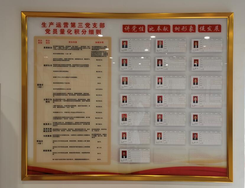 为进一步压紧压实基层党建责任,激发广大党员干事创业的积极性和主动性,争当生产经营的能手、提高效益的标兵、服务群众的先锋,龙8国际-long8唯一官网生产运营第三党支部积极探索建立党员量化积分制度,变党建“软任务”为“硬指标”,以党建聚人心、激活力、促发展。