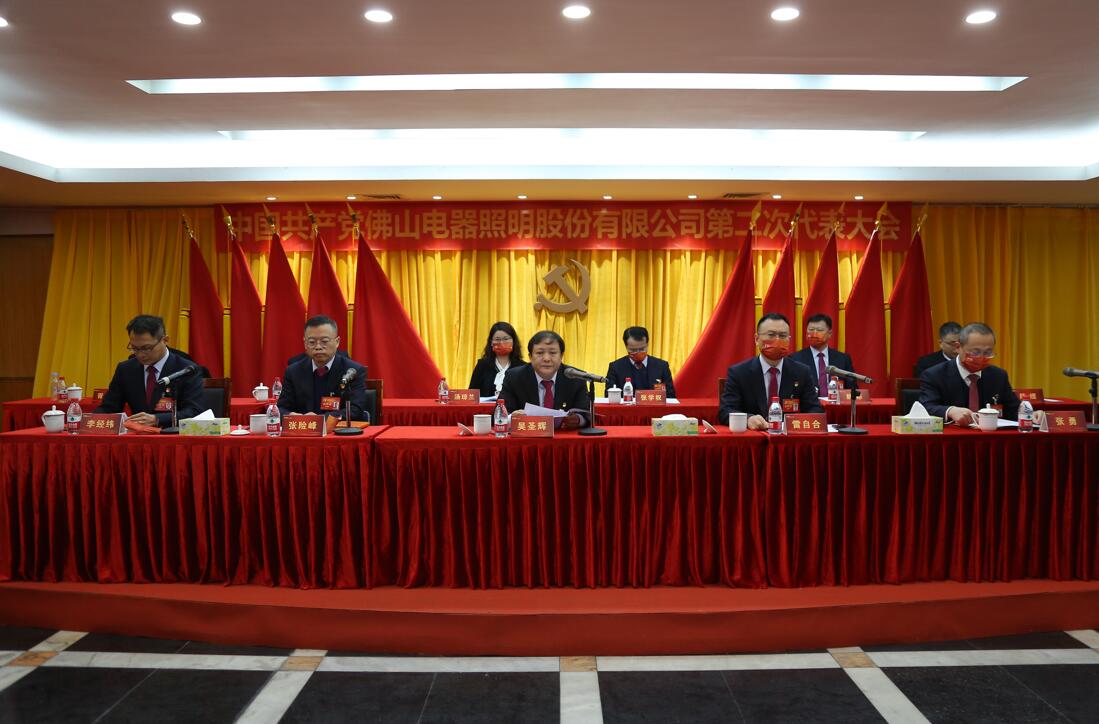 12月27日,中国共产党佛山电器照明股份有限公司第二次代表大会在公司北区三楼会议室胜利召开。大会回顾总结了上一届党委的工作,分析公司面临的形势,明确新的发展战略目标,部署今后一个时期的工作任务,选举产生了公司新一届党的委员会和纪律检查委员会,进一步动员各级党组织、广大党员干部和职工群众,开拓创新、攻坚克难,为实现公司高质量发展、打造一流照明企业而努力奋斗。