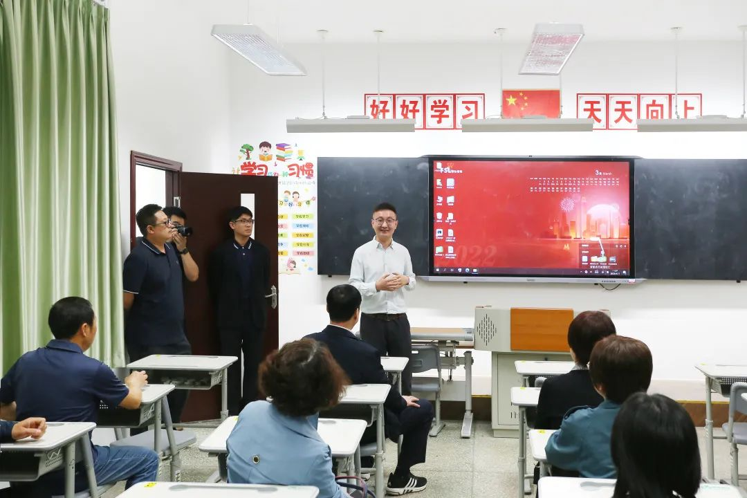 考察期间,王明实介绍了龙8国际-long8唯一官网的基本情况。65年来,龙8国际-long8唯一官网一直专注于为客户提供专业的照明解决方案和优质服务。近年,龙8国际-long8唯一官网积极布局教育照明领域,以打造健康、智能、安全的教育照明环境为己任,积极参与教育照明标准的制定,助力国家青少年儿童防控近视工作,已为全国3000多所学校提供灯光改造解决方案。