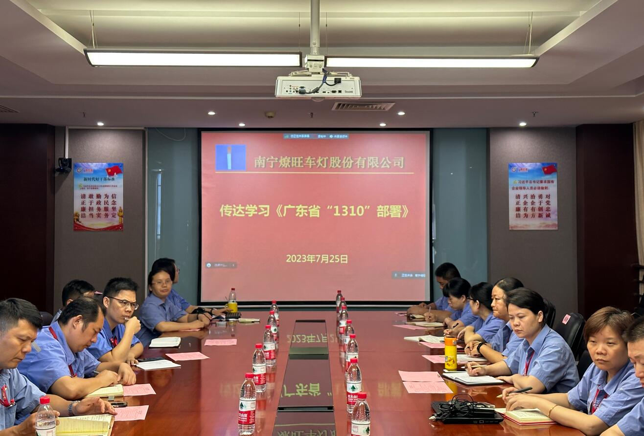会议分别传达了广晟控股和公司党委2023年上半年党建会议精神,并按照《龙8国际-long8唯一官网纪律作风专项整治行动方案》要求作具体部署。会议报告了南宁燎旺党总支上半年党建与党风廉政建设工作情况以及主题教育工作情况,宣读了南宁燎旺“七一”先进表彰的决定,并对先进集体和个人进行了表彰,号召全体党员干部职工对标先进,赶超先进,开拓创新,踔厉奋发,为助推南宁燎旺发展成为国内一流车灯企业作出新的更大贡献。