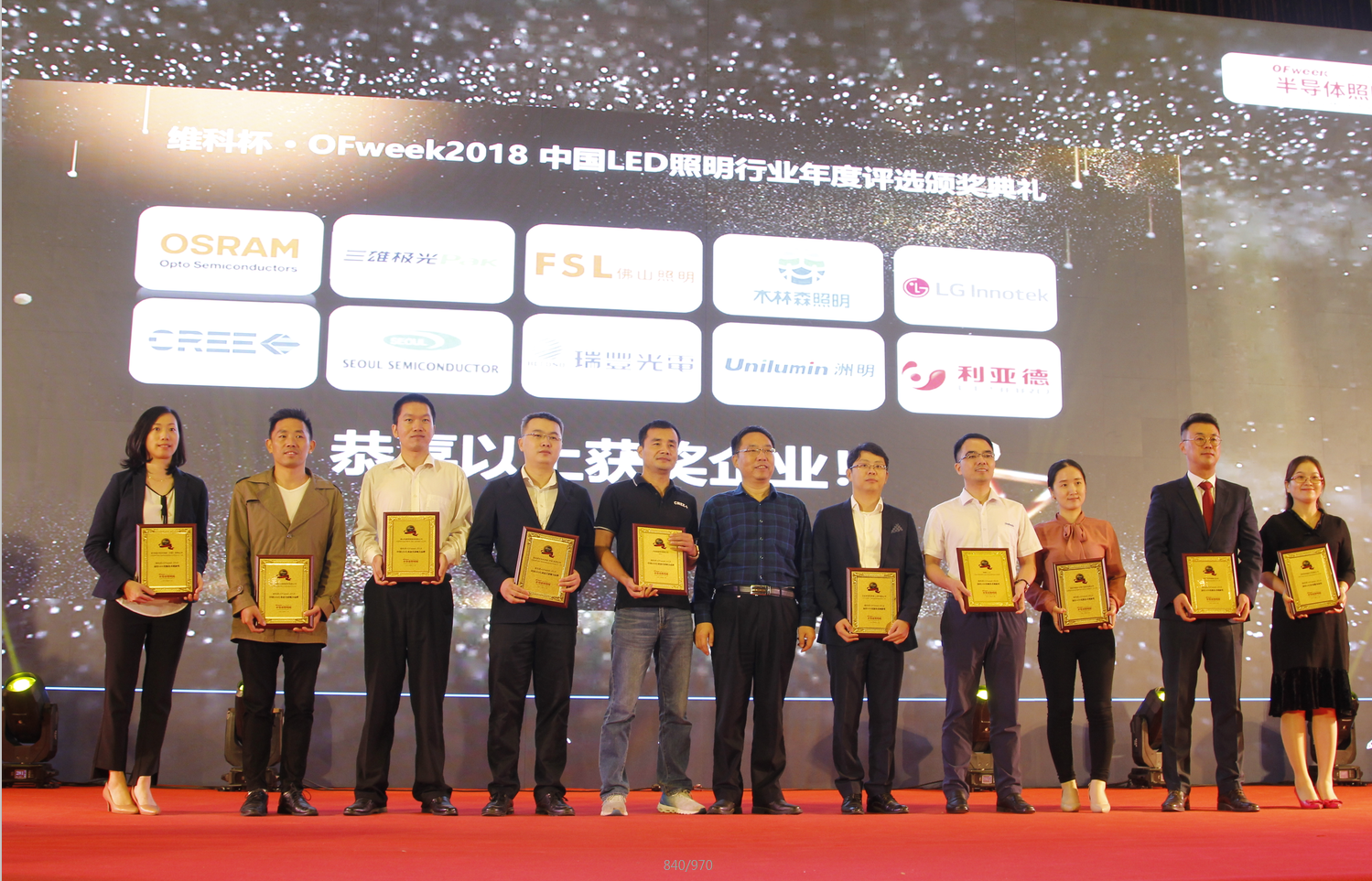 作为本次大会分会场之一,“OFweek科技财富之夜”在11月12日晚压轴上演,正式揭晓了高科技、锂电、LED照明、太阳能光伏行业年度评选结果,旨在表彰过去一年里在高科技领域具有突出贡献的优秀产品、技术及企业。颁奖当晚传来喜讯,龙8国际-long8唯一官网获得“维科杯·Ofweek 2018中国LED行业最具影响力品牌”奖项,吴博士代表龙8国际-long8唯一官网上台领奖。